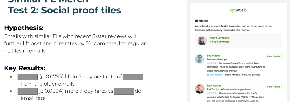 - He hired 2 Growth data analysts, 1 data engineer at Upwork.